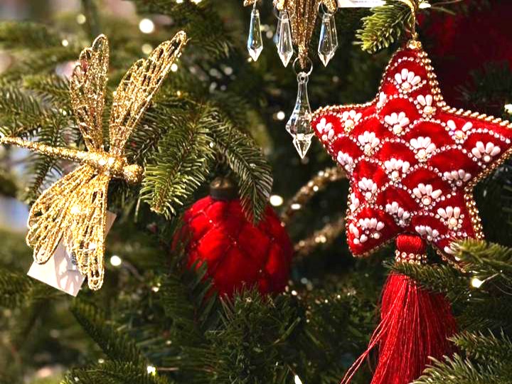 Вечная классика, которая никогда не выходит из моды. Это беспроигрышный вариант для тех, кто ценит традиции и хочет создать по-настоящему торжественную атмосферу. Основой служит глубокий зеленый цвет живой или искусственной ели. Его богатство подчеркивается сочными алыми акцентами: шарами, лентами, бантами. За сияние и роскошь отвечает золото — оно добавляет празднику блеска и света. Используйте золотые гирлянды, сверкающие шары и фигурные украшения. Такое сочетание идеально подходит для просторных гостиных и становится центром всеобщего внимания.