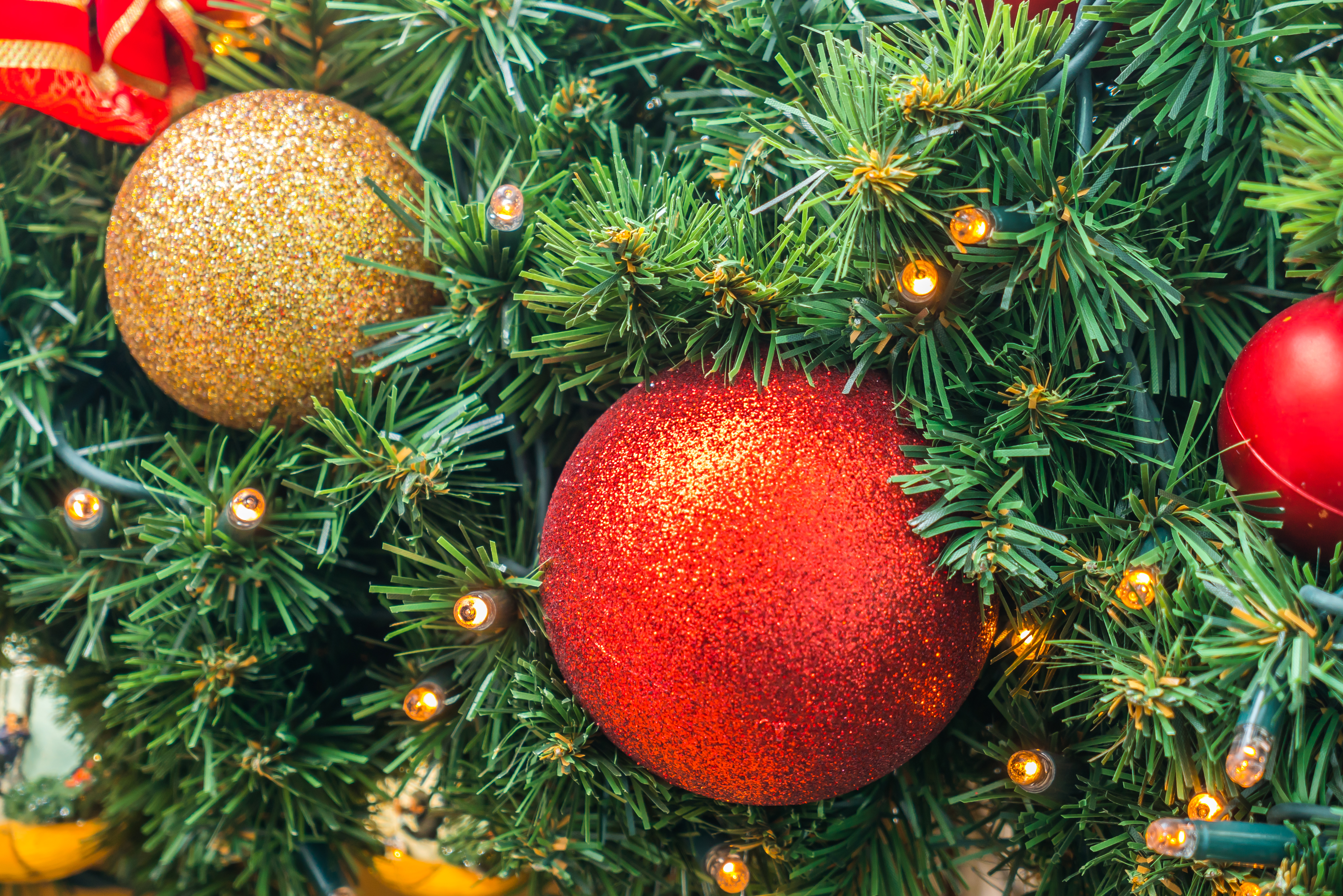 Вечная классика, которая никогда не выходит из моды. Это беспроигрышный вариант для тех, кто ценит традиции и хочет создать по-настоящему торжественную атмосферу. Основой служит глубокий зеленый цвет живой или искусственной ели. Его богатство подчеркивается сочными алыми акцентами: шарами, лентами, бантами. За сияние и роскошь отвечает золото — оно добавляет празднику блеска и света. Используйте золотые гирлянды, сверкающие шары и фигурные украшения. Такое сочетание идеально подходит для просторных гостиных и становится центром всеобщего внимания.