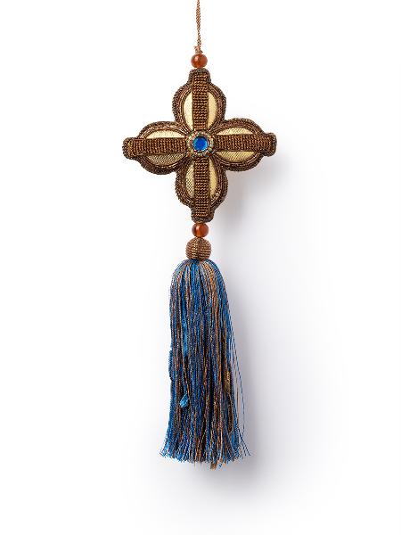 Купить Коричневая подвеска с синей кисточкой 29 см 15369 по лучшей цене с доставкой - интернет магазин №1 в России