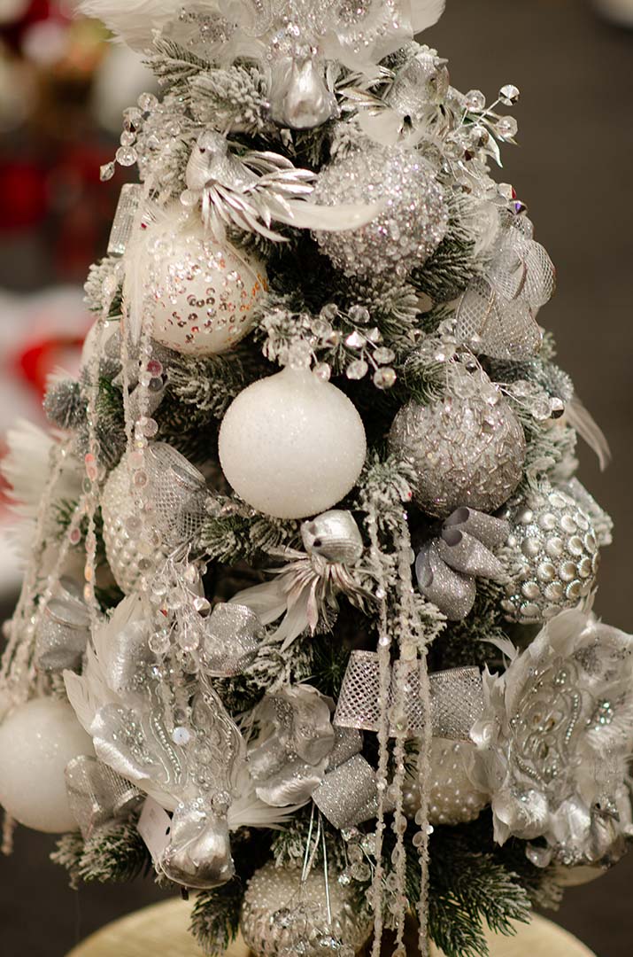 Романтичный декор в бело-серебристой гамме с яркими акцентами пуансетии создает настроение настоящего зимнего чуда. Нежный декор с природными мотивами понравится ценителям утонченной красоты.