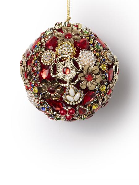 Купить Бархатный красный шар со стразами, жемчужинами и кристаллами 10 см. 17630 по лучшей цене с доставкой - интернет магазин №1 в России