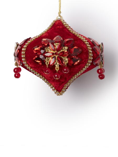 Красная луковица с цветком из кристаллов и золотыми стразами 10 см.