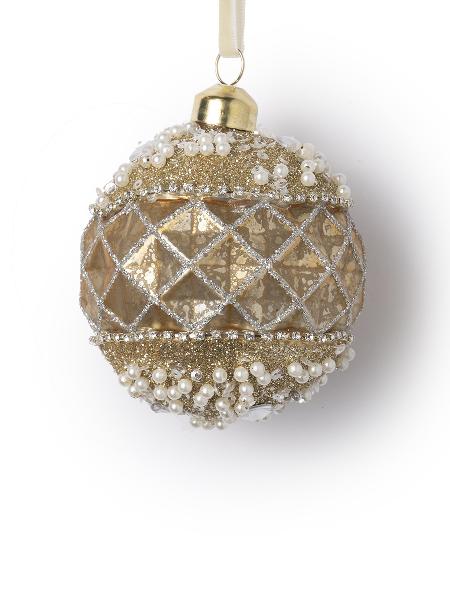 Купить Шар золотого цвета со стразами и бусинами 8 см 17076 по лучшей цене с доставкой - интернет магазин №1 в России