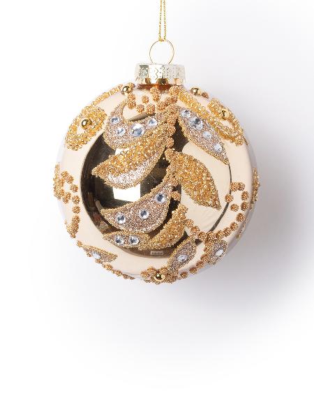 Шар золотой с присыпкой из золотого драже и стразами 8 см