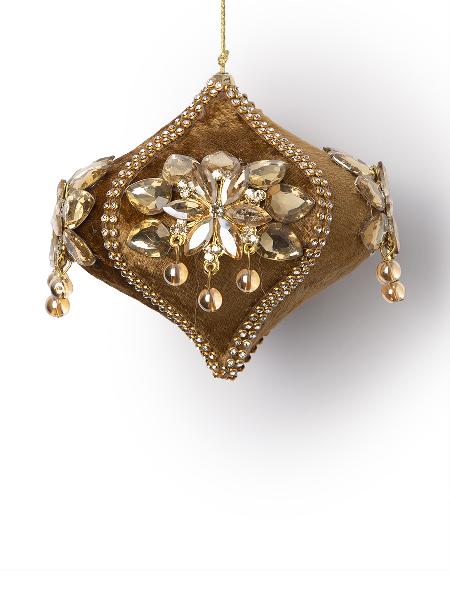 Золотая луковица с цветком из кристаллов и золотыми стразами 10 см.