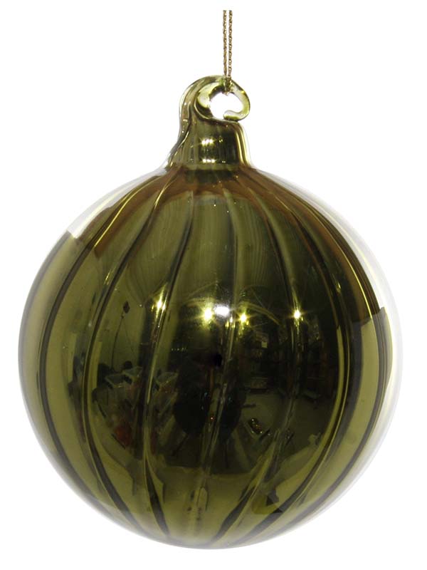 Купить Шар стеклянный линованный сияющий зеленый 8 см 54756 по лучшей цене с доставкой - интернет магазин №1 в России
